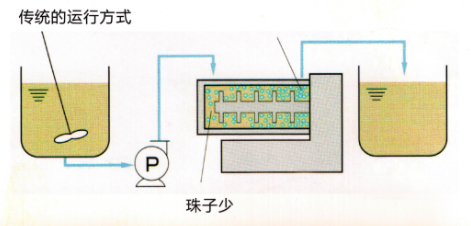 傳統(tǒng)磨機(jī)的運(yùn)行方式 1、粒度難以控制,分散不充分; 2、粒度分布往往較寬; 3、無法控制物料的溫度; 4、在大流量高速運(yùn)轉(zhuǎn)時(shí),磨介易聚集在腔體一側(cè),容易堵塞在出料口。 |