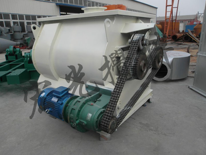 本系列混合機(jī)以強(qiáng)烈、高效混合為特點(diǎn)、臥式筒體內(nèi)兩根攪拌等速反向旋轉(zhuǎn),上特殊布置的槳葉確保物料徑向、環(huán)向、軸向三向運(yùn)動(dòng),形成復(fù)合循環(huán),在短時(shí)間內(nèi)達(dá)到均勻混合。