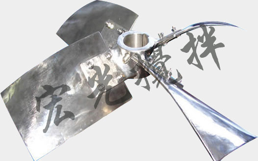①旋槳式攪拌器 由2~3片推進(jìn)式螺旋槳葉構(gòu)成(圖2),工作轉(zhuǎn)速較高,葉片